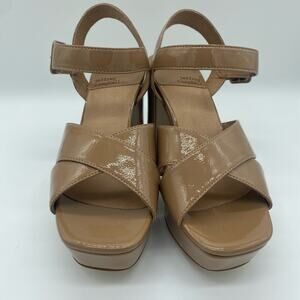 Jeffrey Campbell Tan Patent Leather Strappy Chunky Platform Heel Women's size 7