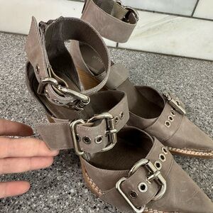 Jeffrey Campbell Taupe Buckle Strap Heels