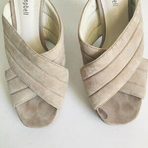 Jeffrey Campbell Taupe Suede Crisscross Slide Block Heel Platform Sandal Size 8.5