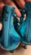 Step out in style with these super unique teal heels featuring chic hardcore electric blue metal chain straps. Perfect for any occasion, these shoes add a touch of sophistication to your outfit.
