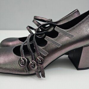 Jeffrey Campbell Tierz Mary Jane Pump Womens 9 Pewter Metallic Iridescent Heels