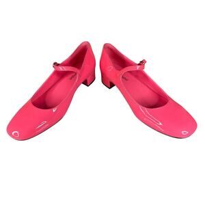 Turn heads in these Jeffrey Campbell Top-Tier Heels in stunning neon pink patent leather. Featuring a classic Mary Jane strap, rounded toe, and comfortable block heel, they combine vintage charm with a bold, modern twist.