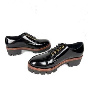 Jeffrey Campbell Trevor Platform Lug Sole Derby Oxfords Black Patent Leather 8
