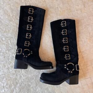Jeffrey Campbell Trouble Buckle Boot Black Oiled Suede NEW tall boots sz 9