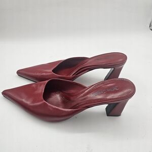 Jeffrey Campbell Unamused Cherry Red Block-Heel Pointed-Toe Mules Size 8