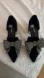 These are almost new, Jeffrey Campbell Valenti Embellished Bow Loafers. These are a pair of high end vibrant black soft suede elegant heels with striking studded detail on heels and bow. The bow ties are soft. Multifaceted crystals drench a statement-scale bow in glamorous shimmer at the vamp of a d`Orsay loafer that balances a dramatically pointed toe with a blocky metallic heel blazing with marquee-light sparkle. See video. Perfect for a chic look. Worn around house. Never worn out. Couldn’t fit into them as I needed a 9. Reviews say they’re true to size and people love them and are so very happy with them.