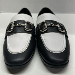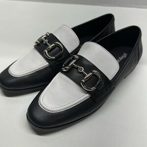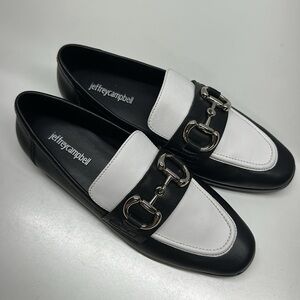 Jeffrey Campbell Velviteen Bit Leather Flat Loafer Shoes Leather Black White 7