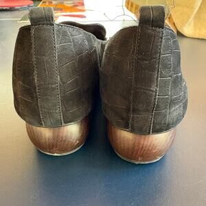 Gorgeous soft suede pointed toe shoes with textured print and stylish rounded wooden block heels