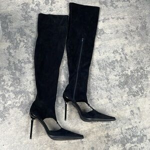 Jeffrey Campbell Vortexx Cut Out Over The Knee Boots Stiletto Pointed Toe Black