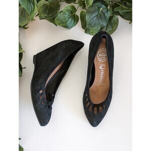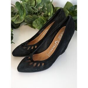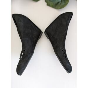 Features and description: Ann Arbor wedges; heels; pointed toe; cut out detail; suede; black