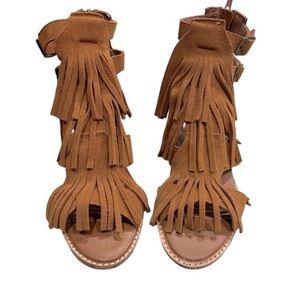 Jeffrey Campbell Western Revival Fringe Dodge Suede Stacked Heel Sandals Size 8