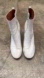 Chic white ankle booties with side zipper. Sleek design for versatile wear.