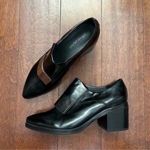 Jeffrey Campbell Wilhelm Box Silver Black Heeled Loafers, Pointed Toes, Size 8