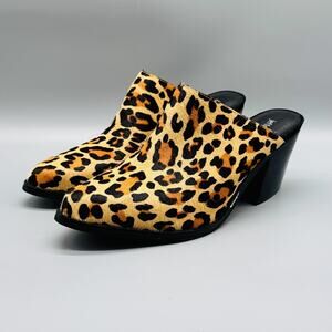 Jeffrey Campbell Women 9 Brown Favela Calf Hair Leopard Mules Slip On Block Heel