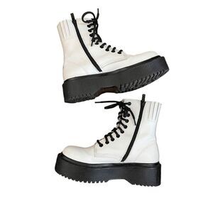 Jeffrey Campbell Women’s 6.5 Lugged Platform Sopas White Lace-Up Boots