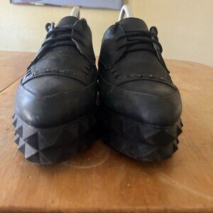 Jeffrey Campbell Women's Biafra Lace Up Sz 10 Platform Black Leather Shoe Oxford