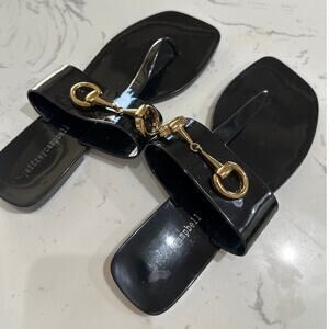 Jeffrey Campbell Women's Black A Lil Bit Jelly Thong Sandal, Size 8, EUC