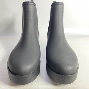 Step out in style with these sleek black ankle rain boots. Run small. I normally can fit between 8.5 to 9. I can fit in these but my toes are squished.