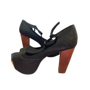 Jeffrey Campbell Women's Black Foxy Wood Platform Heel Sandals Size 8.5