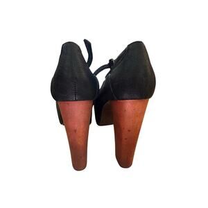 Jeffrey Campbell Women's Black Foxy Wood Platform Heel Sandals T-strap Size 8.5