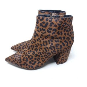 Jeffrey Campbell Womens Boots Final Leopard Calf Hair Point Toe Heeled Ankle 9.5