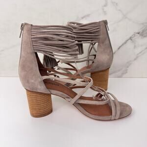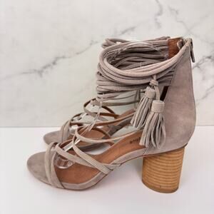 Jeffrey Campbell Womens Despina Sandals Size 8.5 Suede Strappy Fringe Boho Taupe