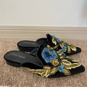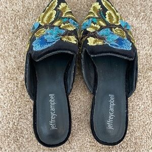 Jeffrey Campbell | Women's Floral Embroidered Valencia Slip On Mules Size 6.5