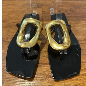 Jeffrey Campbell Women’s Linques Jelly Sandals – Black/Gold – Size 9 – NWOB