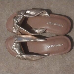 Jeffrey Campbell Womens Rose Gold Soft Leather Metallic Sandals Size 7 Handmade in India Minor Flaws Boho Flats Preowned
