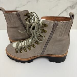 Jeffrey Campbell Womens Stanley Boot Size 8 Suede Leather Chunky Lug Faux Fur