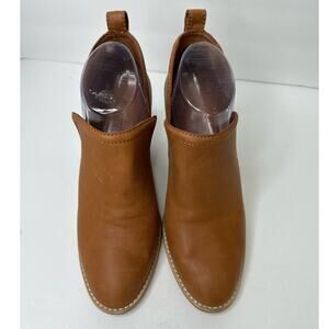 Jeffrey Campbell Womens size 8 Rosalee Tan Leather Bootie Western Stacked Block Heel Ankle Slit Side Cutout