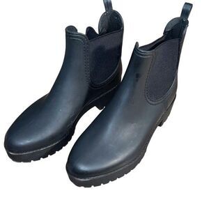 Jeffrey Campbell Womens Chelsea Elastic Side Panel Matte Rain Boots Black Size 8