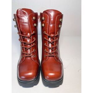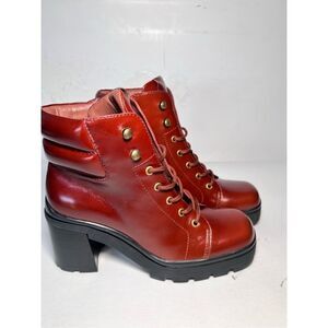Jeffrey Campbell Womens Hikes Block Heel Leather Lace Up Lug Sole Bootie Brown 9