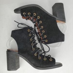 Jeffrey Campbell X Free People Minimal Black Suede Lace Up Heel Booties