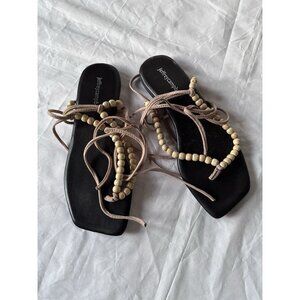 Jeffrey Campbell Xeniah Sandals Natural Ankle Wrap Leather Beaded 8 $75