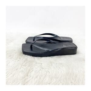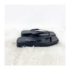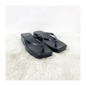 Jeffrey Campbell Y2K 11 Black Womens Leather Square Toe Thong Flip Flop Sandals