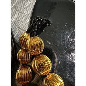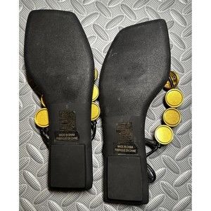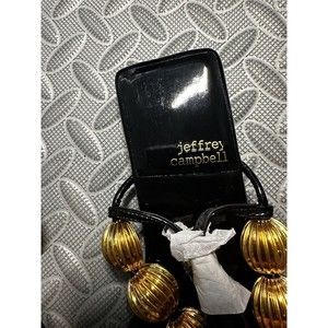 Jeffrey Campbell Yucatan gold Bead Thong Square Toe Black flat Sandals Sz 5 NEW