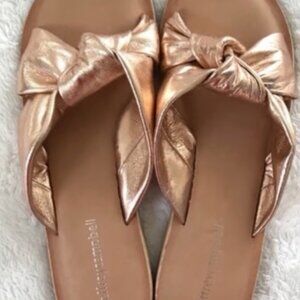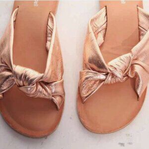 Jeffrey Campbell “Zocalo” Leather Slides – Rose Gold Twisted Knot Metallic 8 ✨