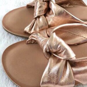 The Zocalo Slide features a soft, knotted strap and timeless flat silhouette that goes with any outfit — from relaxed denim to breezy dresses. The metallic rose gold leather adds a touch of shimmer for that effortlessly chic look.