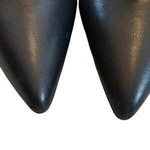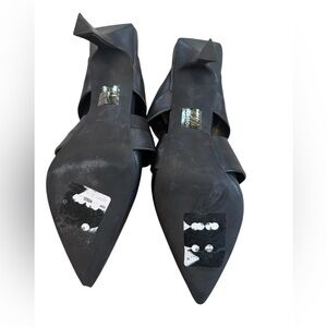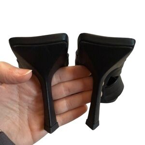 Keywords: Jeffrey Campbell black heels, pointed toe mule, slip-on stiletto heels, knotted strap heels, Jeffrey Campbell size 9, modern mule pumps, black leather heels
