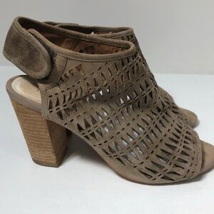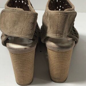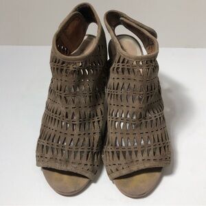 Jeffrey Campbell suede peep toe block heel booties. Size 9.