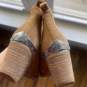 Only worn once! In excellent condition. Size 6 tan suede western booties with silver embellishments