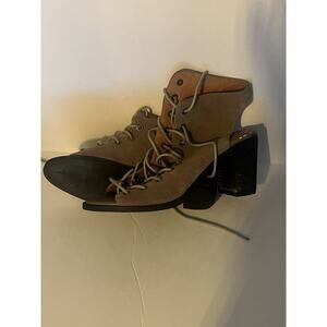 Amazing booties. These were purchased on sale and had obviously been tried on assumingly multiple times. Size 9.5. These have taupe uppers and black heels. Stunning