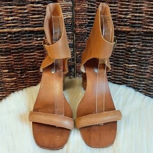 Jeffrey Campbell x Free People 8.5 Leather Magic Heel Boho Cuff Sandals Brown