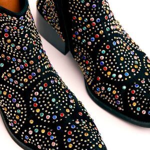 Jeffrey Campbell x Free People Boots Ankle Black Suede Rhinestones Embellished Size 7.5