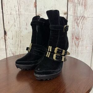 Jeffrey Campbell x LF Crushed Velvet Buckled Boots Vintage Gothic look 7 GuC