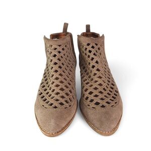 Jeffrey Campbell Taggart Perforated Suede Ankle Booties Taupe Brown Women's 7