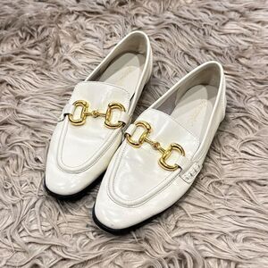 Jeffrey Campbell loafers 7.5. Cream color with gold hardware. Great condition. Leather. Very comfortable! These run small. More like a 7.