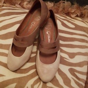 Cream & Taupe handmade Ibiza flat in Size 7 NWOT. Only tried on indoors. Such a classy and classic shoe!