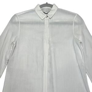 Jeffrey Dodd Long Sleeve Sheer Button Down Shirt SIZE 38 US 4 White Blouse FLAW
